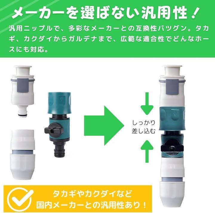 タカギ、カクダイからガルデナまで、広範な適合性でどんなホースにも対応。