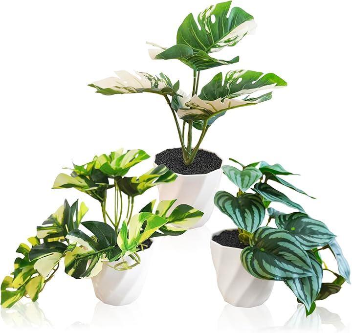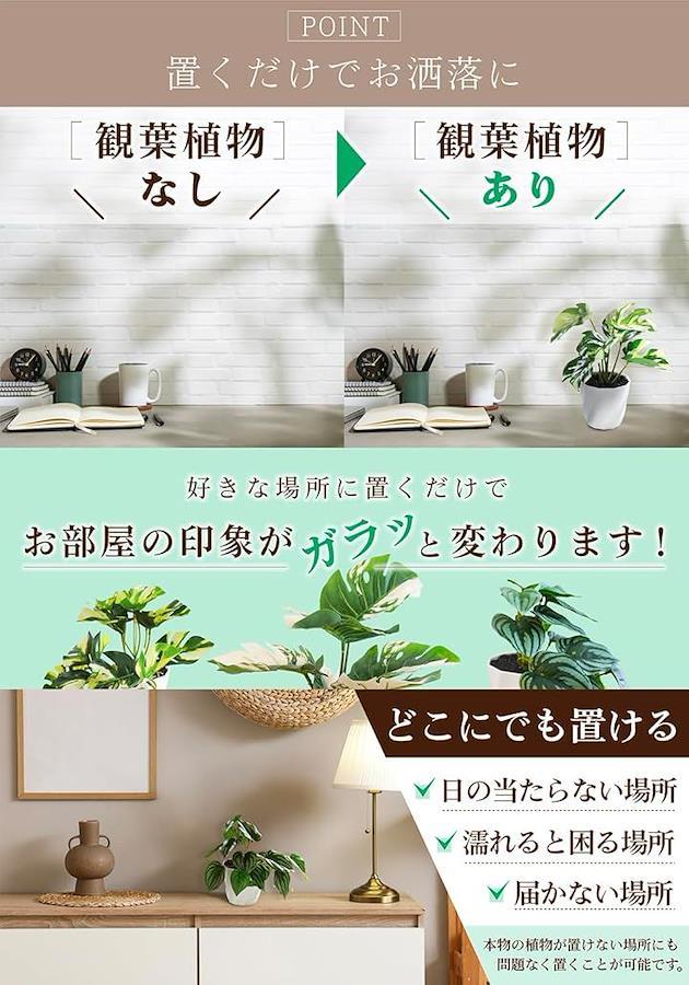スイカペペロミア風や斑入りモンステラ風など、個性的な葉が空間に彩りを与えます。