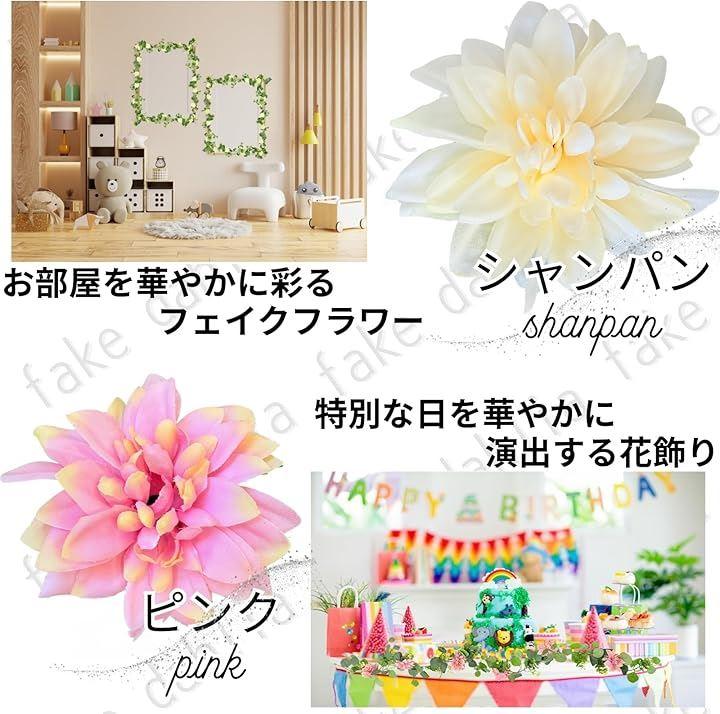 幅広い用途に対応:フェイクダリヤはリビングや玄関、寝室のインテリアはもちろん、ウェディングのブーケやパーティーのテーブル装飾、店舗ディスプレイなど多彩なシーンで活躍します。