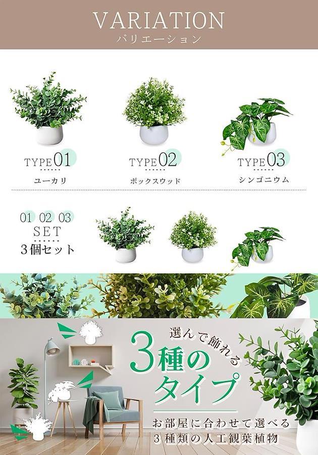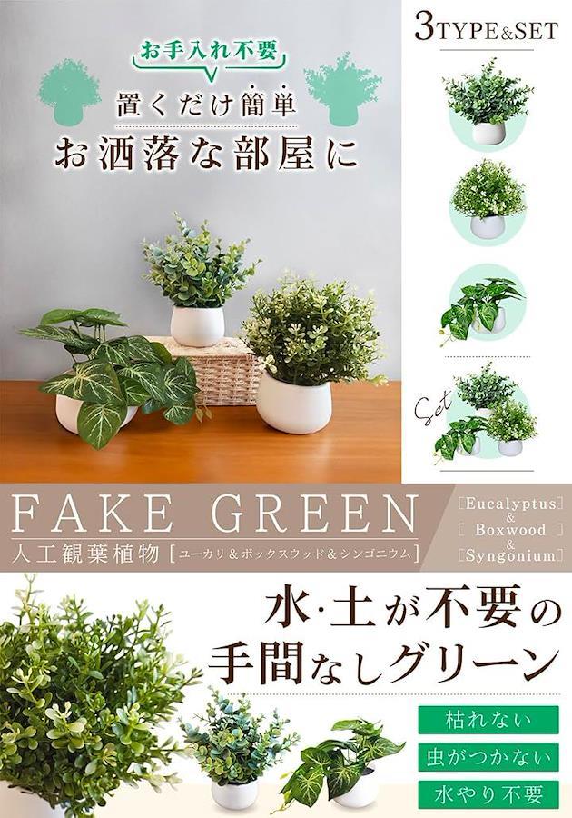 デスク周りに癒しを添えるフェイクグリーン3点セット。