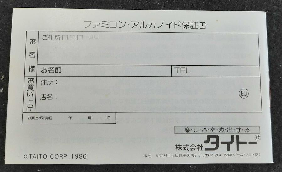 FCソフト アルカノイド TAITO ファミコンソフト TAITOアルカノイドFCソフト