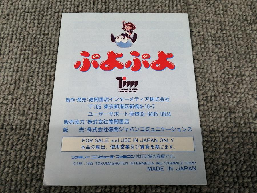 FCソフト ぷよぷよ TOKUMA ファミコンソフト TOKUMAぷよぷよFCソフト