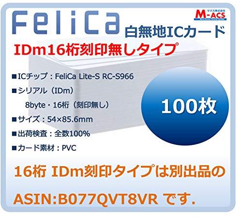 ※【重要】白地に刻印無しの真っ白なブランクカードです。刻印が必要なお客様は【ASIN:B077QVT8VR】をお求めくださいませ。 ■公共機関・大手企業・私公立学校・一般企業などへ多数の導入実績がございます。 学生証、社員証、ポイントカード、電子錠、電気錠システム、勤怠管理システム、入退管理システムなど様々な用途へ ご利用いただけます。 入退室管理ステムの設計施工も手掛けており現場を理解してます。ご安心してご使用できます。 1枚、5枚、10枚、20枚、30枚、50枚、100枚、200枚、300枚、500枚とご準備しております。 (フェリカ ICシール ICキーホルダーも発売開始) 【 製品仕様 】 型番:Lite-S RC-S966 FeliCaチップ 寸法:85.6×54×0.84mm 材質:プラスチック 重量:約6g 通信:FeliCa 通信方式, NFC(ISO18092)Passive mode に準拠 チップ名称:FeliCa Lite-S チップメーカー:ソニー株式会社 通信距離:5cm チップID番号:16桁 商品出荷時検査:全数100%動作確認発送