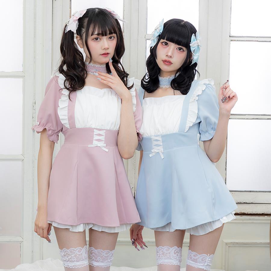 ウエスト部分レースアップ二段、袖口にもリボン付き