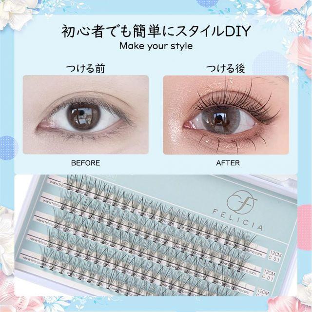 サイズ:C0.112mm◆商品名:FELICIA部分つけまつげナチュラルマツエクセルフ束つけまつげ部分DIYまつ毛10本束(0.1mmCカール12mm)