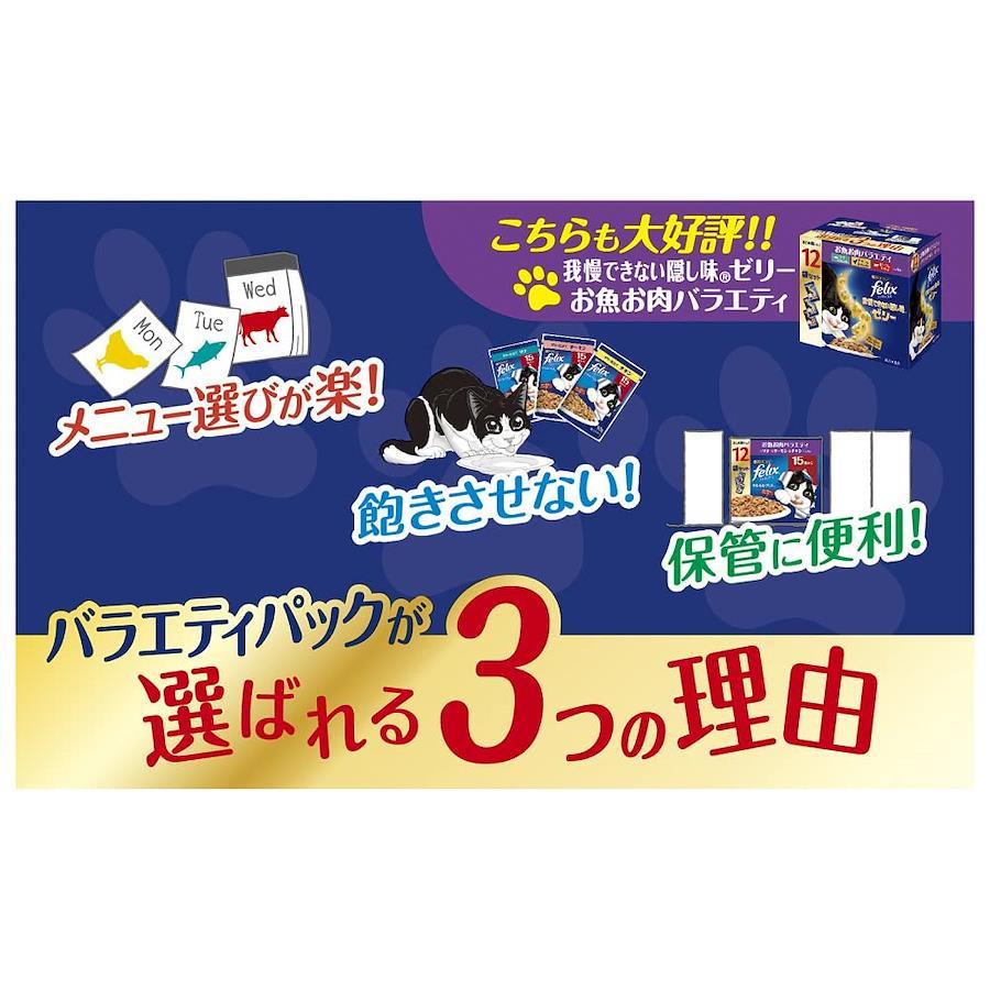 商品紹介 やわらかくほぐしたお魚やお肉のうまみをジューシーなゼリーで包み込んだごはん。 15歳からのネコさんが食べやすい小さめフレークで、ツナ・サーモン・チキンの3種類が入ったバラエティパック。 使用方法 成猫体重1kgあたり 約 2 袋を目安に1日2回に分けて与えてください。種類・運動量等に応じて調節してください。いつでも飲めるように、新鮮な水を清潔な容器に用意してあげましょう。