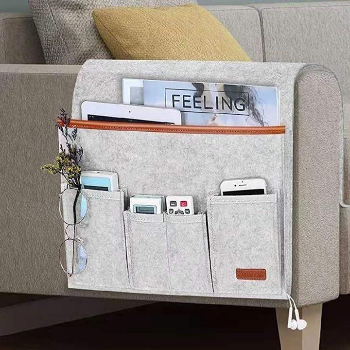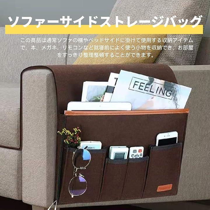 大ポケット1つと小ポケット4つの多機能デザインで、雑誌やリモコン、スマートフォンなどを一箇所にまとめて収納可能。
