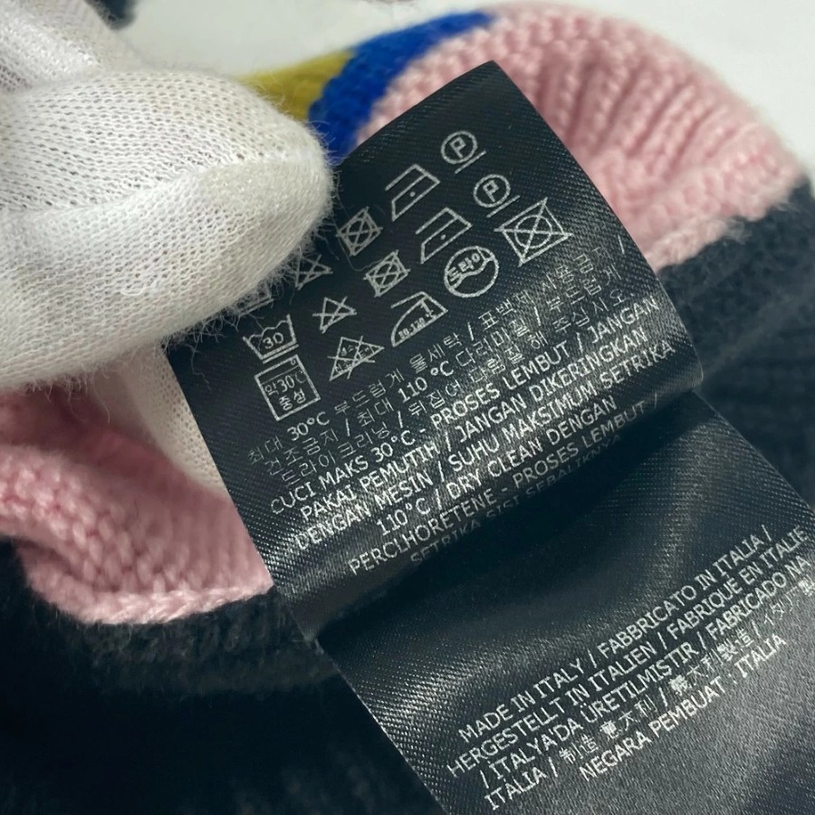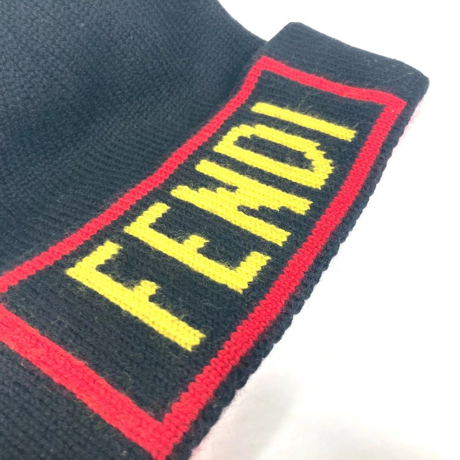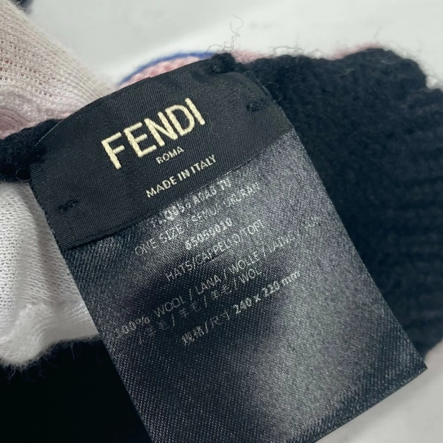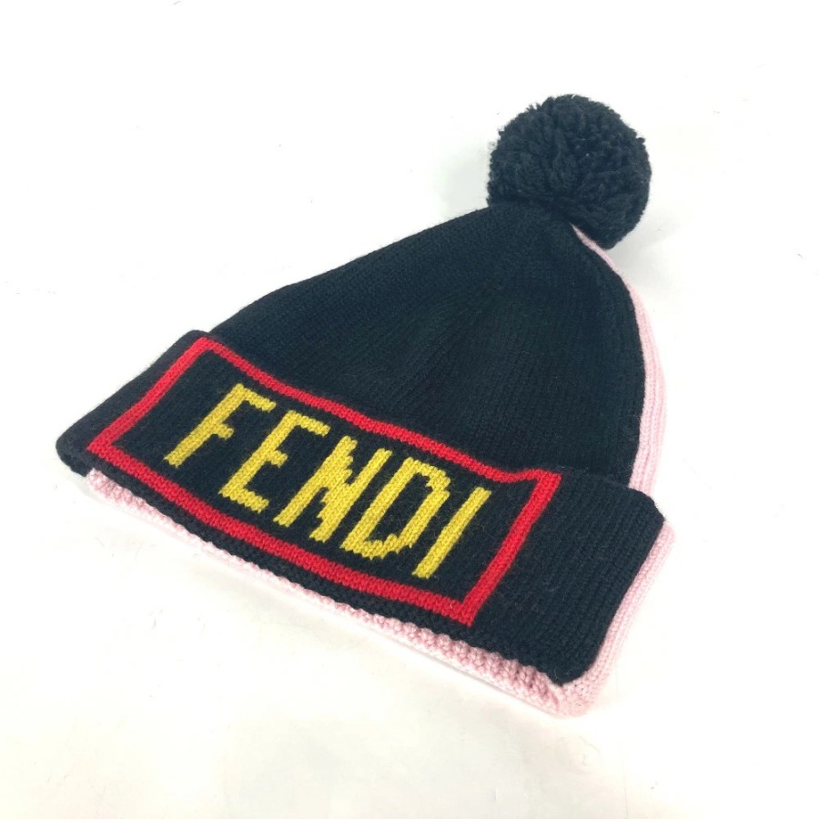FENDI FXQ056 Pom-pom Logo Beanie Hat, Knit Cap, Wool, Women's, Black [Used]