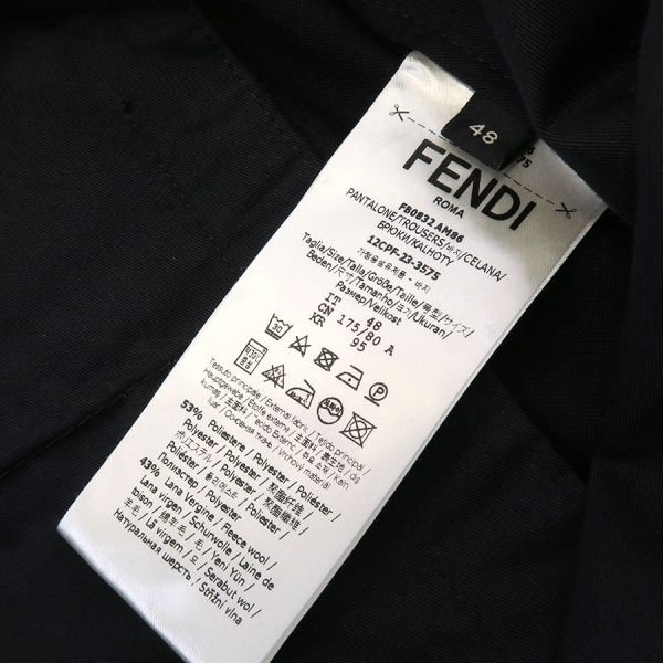 ■採寸#48 W:81cm~ H:107cm 股上:33.5cm 股下:78cm わたり幅:34cm 総丈:105cm■素材ポリエステル53% ウール43% ポリウレタン4%■コメントフェンディのメンズパンツが入荷しました!!ウエストはゴム入りで紐調節可能になりまして、裾はリブ地ニットでサイドファスナー付きです。右後ろポケットにはフェンディらしいアイコンが付いたデザインです☆裏ウエストまわりにスレ汚れ、裾裏の薄汚れ、その他シワヨレなど見受けられる為Bランクでの評価になります。汚れについてはクリーニングで解消できる程度かと思いますのでその他目立つ汚れなどはなくおすすめです!