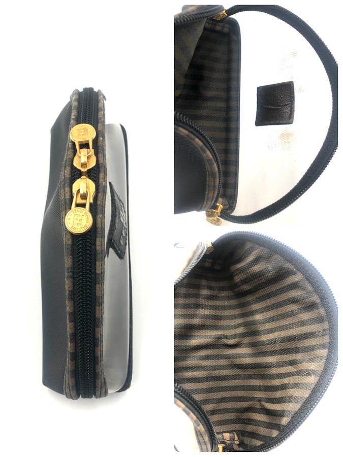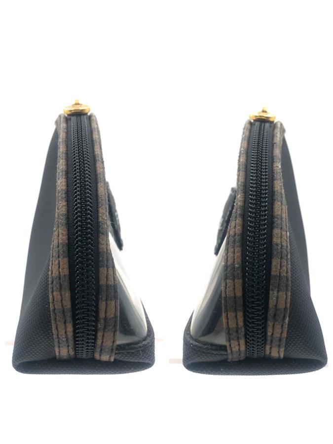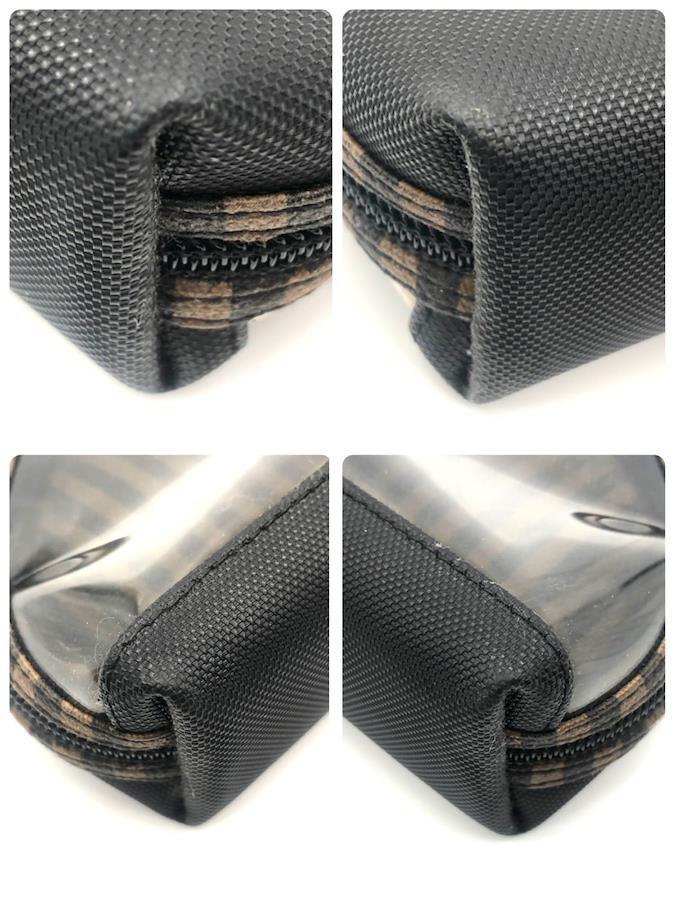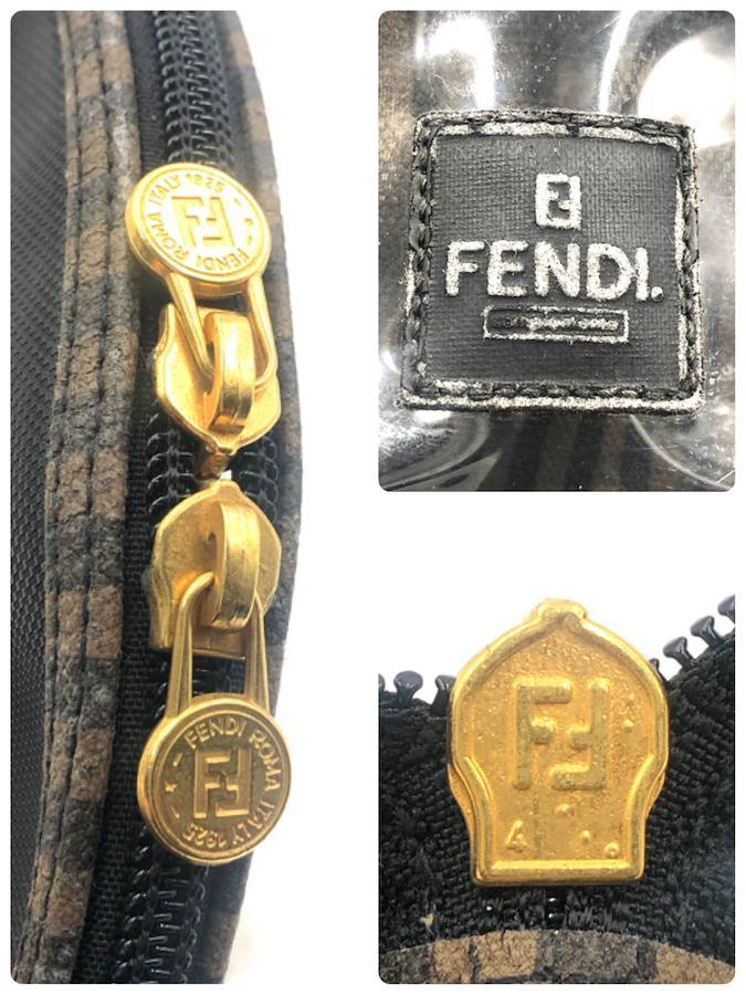 ■商品概要FENDI フェンディペカンコスメポーチ ミニポーチ 化粧ポーチ メイクポーチコーティングキャンバス×ビニールストライプグレーブラウン系ゴールド金具ロゴプレートレディースラグジュアリー 高級 ハイブランド