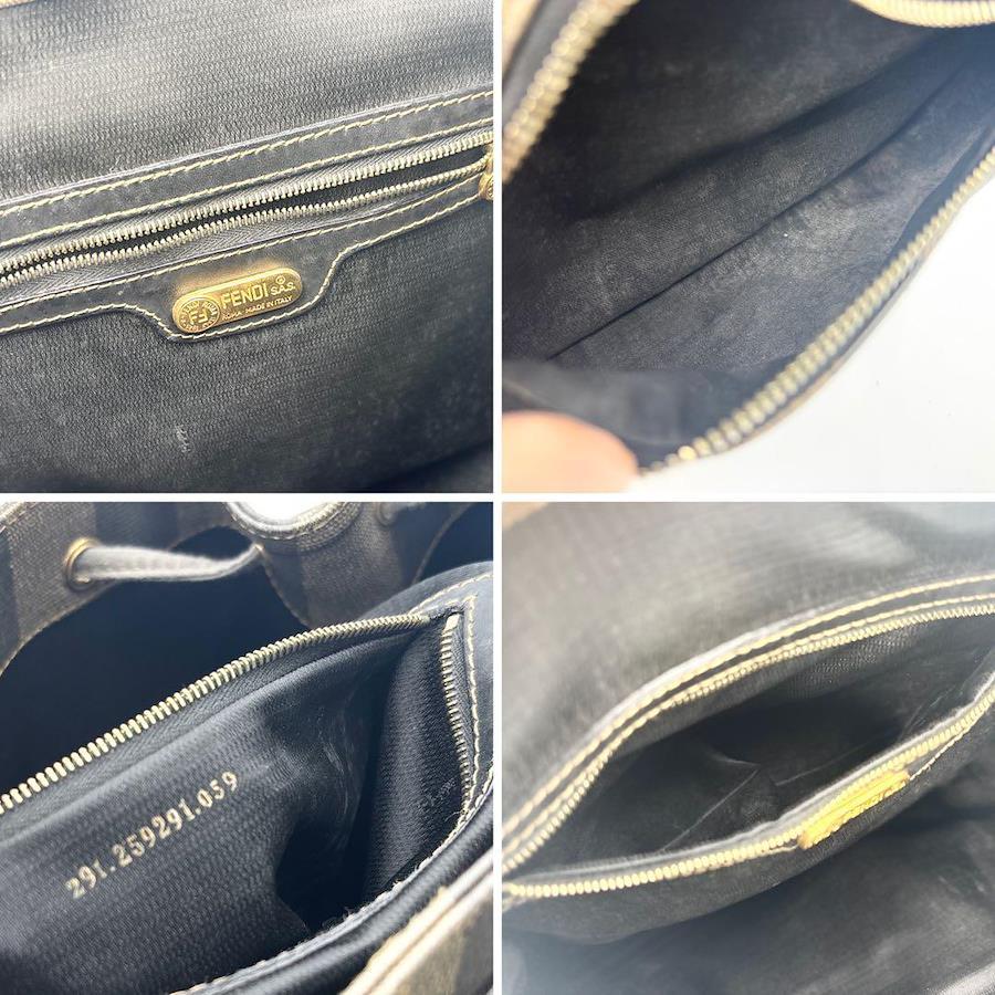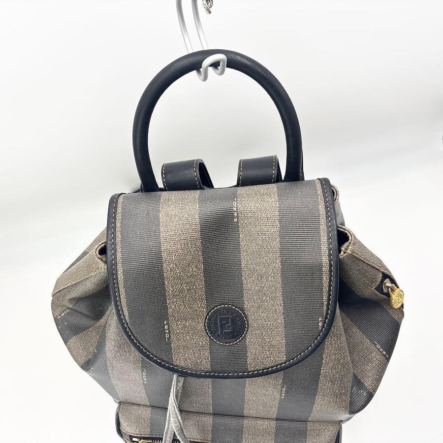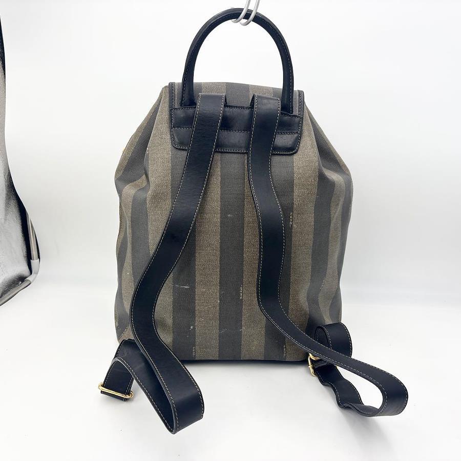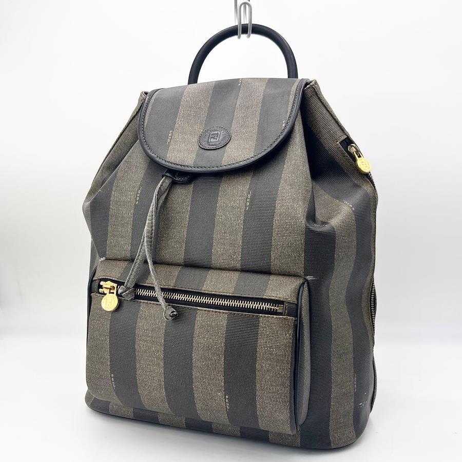 FENDI フェンディ リュック ペカン柄 バックパック 巾着 レザー PVC 黒 リュック リュックサック グレー系 鞄 カバン ゴールド金具 レディース メンズ ユニセックス ハンドバッグ トートバッグ