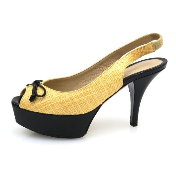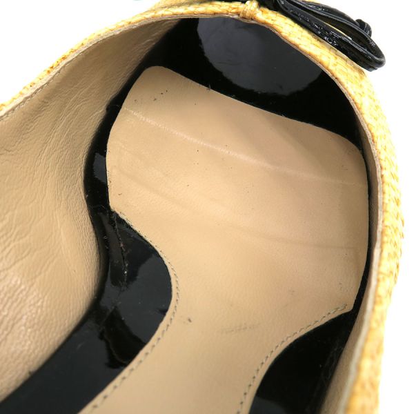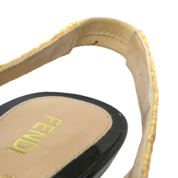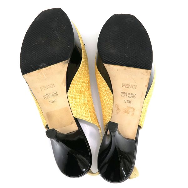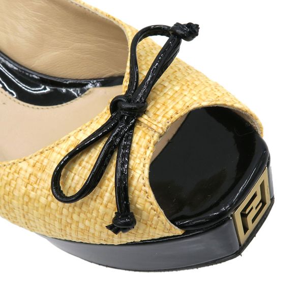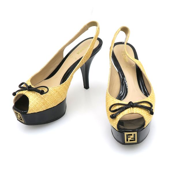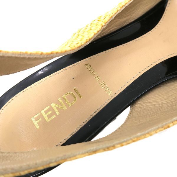 ■採寸#36 1/2 日本サイズ:約23cm 甲幅:約7.5cm ヒール高さ:10cm■素材表記なし■コメントフェンディからパンプスが入荷しました!夏らしいラフィア調のハイヒールで、つま先はオープントゥ、その下にはFF柄のカットアウトデザインが施されたオシャレなパンプス!バックゴムタイプで脱ぎ履きも楽ちんです☆靴底に外履きによるスレや汚れ、前の厚底部分やヒール部分にエナメル特有のべたつき、バックゴム部分にスレ汚れや茶色の点シミ、インソール部分指先にヨレや黒ずみ汚れ、社外ソール貼り替え、つま先のFFモチーフ部分に黒いスレが見受けられる為Bランクでのご紹介となりました。目立つダメージや汚れはなく、比較的キレイめなお品かと思います◎※中古品の為、ヒールのゴムに劣化が出ている場合がございます。新しいゴムに替えて頂いてからのご試着をお勧め致します。