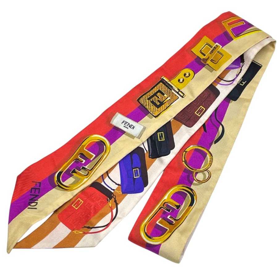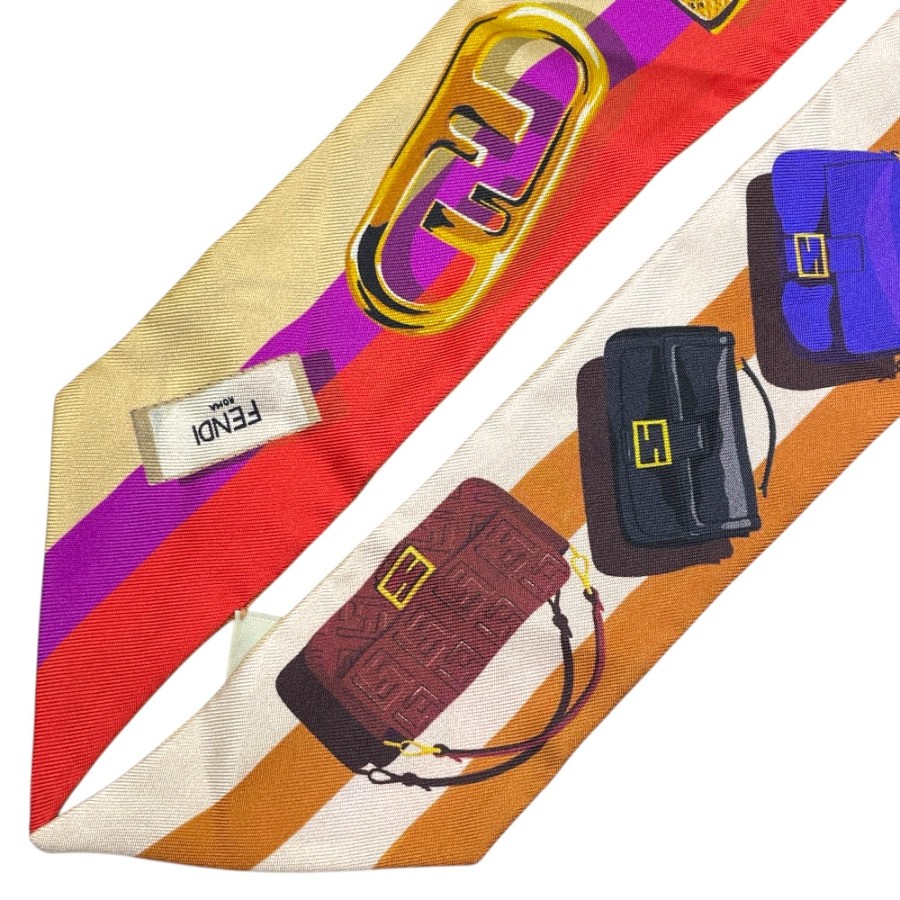 【ブランド】FENDI フェンディ【商品名】ラッピー スカーフ【商品番号】-【カラー】レッド/オレンジ/パープル/マルチカラー【サイズ】約115×5cm【素材】シルク【付属品】箱【ランク】B(使用感有一般中古)【コメント】シワ/薄汚れ(小) *タグ糸ほつれ【管理番号】0403a0815o商品情報