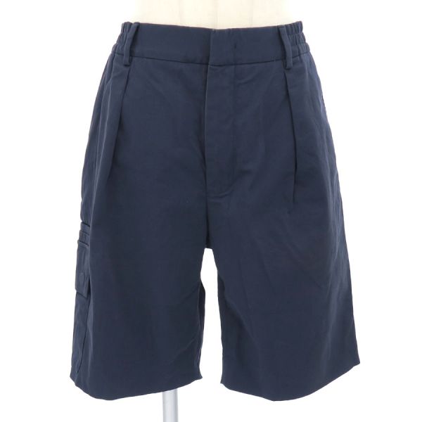 ■採寸#52 W:86cm H:116cm 股上:30cm 股下:23cm■素材コットン97% ポリウレタン3%■コメントフェンディからメンズショートパンツが入荷しました!シンプルながらも両サイドの黒いトリミング部分にさりげなくブランドロゴがデザインされたショートパンツ☆落ち着きのあるネイビーカラーが上品な印象の、夏のカジュアルウェアです!全体にシワや色褪せ感、ポケットやウエストホック周り・ベルトループなど生地の凹凸部分や角に白スレ、裾の折り目の乱れが見受けられるためBランクでのご紹介となりました。着用感はございますが、ちょっとしたアクティブなお出かけには問題ないかと思います◎