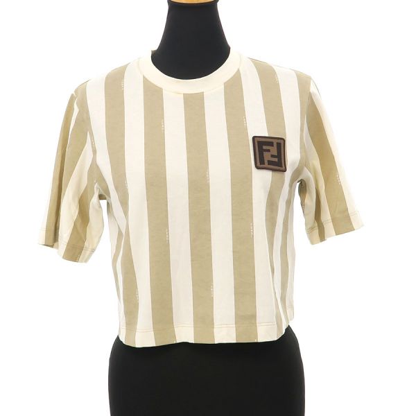 ■採寸#XXS 肩幅:39cm 袖丈:23cm B:84cm 着丈:40cm■素材コットン100%■コメントフェンディからTシャツが入荷しました!くすみ系のラテカラーが可愛らしい、太ストライプのクロップド丈Tシャツです☆全体にシワ、収納臭、袖や裾のヨレ、襟下にオレンジっぽいお化粧汚れの様な跡が見受けられる為Bランクでのご紹介となりました。襟下の汚れ以外には目立つダメージや汚れはございません◎