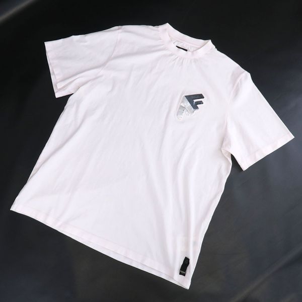 ■採寸#S 肩幅:44cm 袖丈:25cm B:112cm 着丈:71cm■素材本体:コットン100% 縁取り:コットン94% ポリウレタン6%刺繍:ポリウレタン100%■コメントフェンディからメンズのTシャツが入荷しました!ほんのり色付いたピンクカラーのボディと、胸元にあしらわれたメタリックなパッチがスタイリッシュなデザイン☆シンプルながらもしっかりとした存在感とさりげない高級感を感じる一着です!全体にシワ、袖先や裾のヨレ、メタリックパッチの角にやや剥がれ、裾のタグ上に糸の節、襟裏に薄くスレ汚れが見受けられる為Bランクでのご紹介となりました。着用感はあるものの、着用時に目立つダメージや汚れはございませんので、まだまだ問題なくご着用いただけます◎