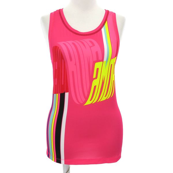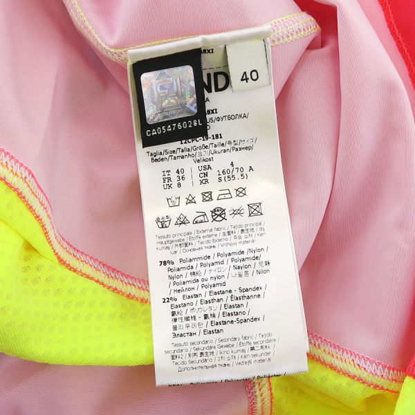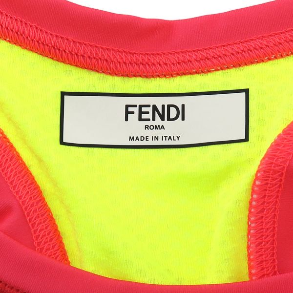 ■採寸#40 アームホール:52cm B:70cm 着丈:51.5cm■素材表地:ナイロン78% ポリウレタン22% 別布表地:ポリエステル85% ポリウレタン15% 刺繍:ポリ塩化ビニル100%■コメントフェンディからトップスが入荷しました。ピンクやイエローなど蛍光色を使用した元気いっぱいな一品です。正面にはFENDIロゴやROMAなどがデザインされておりフレッシュさが全面に表れています。全体に畳み跡やシワ、裏面右脇裾・裏面左肩ストラップ部分の糸ほつれ、後ろメッシュ裾部分の色褪せが見受けられる為Bランクでのご紹介です。大きなキズや汚れは見られませんでした。ランニングやアウトドアなど体を動かす時におすすめの商品です。