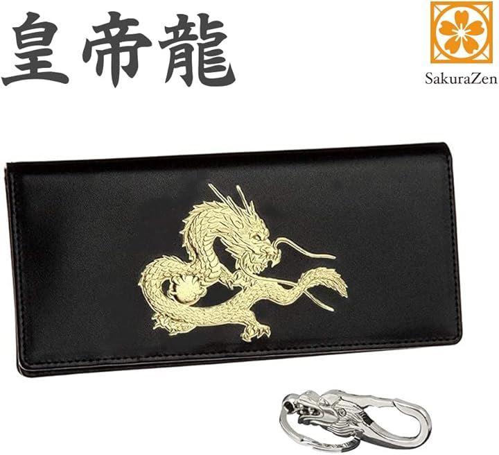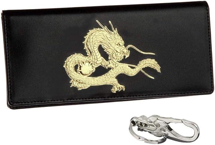 Feng Shui Secret Emperor Dragon Long Wallet Increases Your Fortune with Real Gold Foil Engraved Cowhide Genuine Leather Men's Black Gold Netsuke Gift Made in Japan