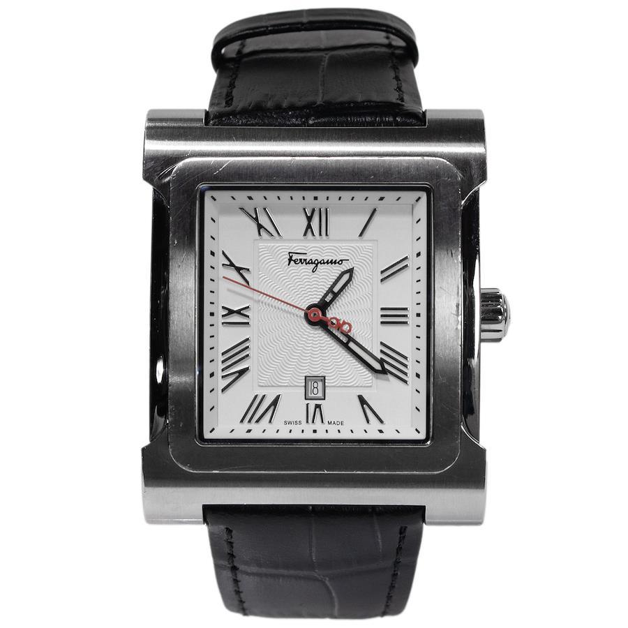 ケース・バンドの素材:ステンレススチール・クロコダイル型押しレザー