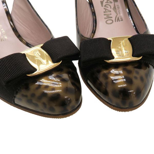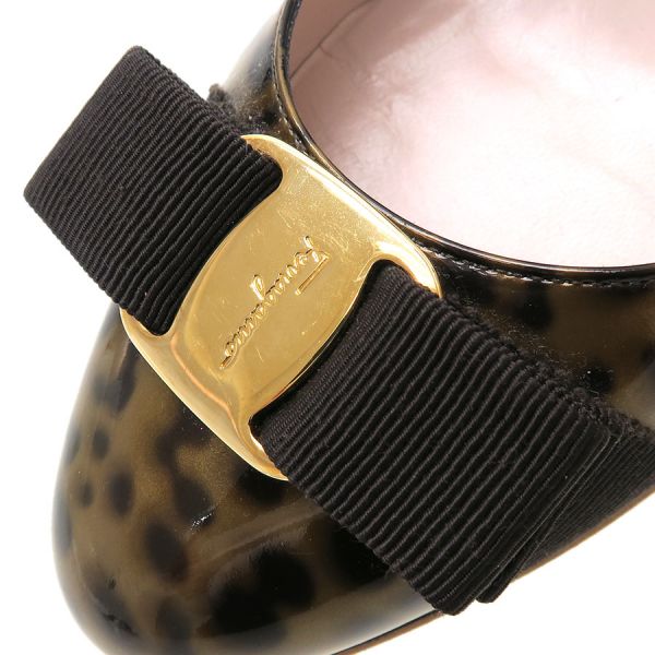 ■採寸#7 日本サイズ:約24.5cm 甲幅:8cm ヒール高さ:7cm■素材表記なし■コメントフェラガモからパンプスが入荷しました。ヒョウ柄デザインで甲のリボンが可愛らしいパンプスです☆状態はやや靴底に外履きによる汚れ、踵に若干の擦り減り、インソールに若干のシワ・汚れ、左靴左サイドにスレ・汚れ等が見受けられる為Bランクでのご紹介です。まだまだ問題なくご着用いただけます。