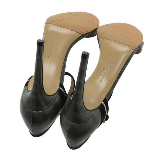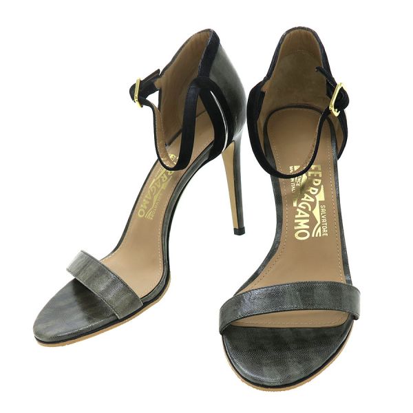■採寸#6 1/2 日本サイズ:約23.5cm 甲幅:8cm ヒール高さ:9.5cm■素材表記なし■コメントフェラガモからサンダルが入荷しました!エキゾチックレザー風のデザインと、華奢なヒールのシルエットが素敵なストラップ付きのサンダルです☆全体に極僅かな気にならない程度のスレ感、ストラップ全体のヨレ、ストラップやその周りのスエード部分に白スレ、部分社外ソール貼り替え、靴底に若干のスレ汚れが見受けられる為Bランクでのご紹介となりましたが、目立つダメージや汚れ・外履き感も少なく綺麗めなお品となっております◎お値段もお求めやすく、おすすめです◎※中古品の為、ヒールのゴムに劣化が出ている場合がございます。新しいゴムに替えて頂くことをお勧め致します。