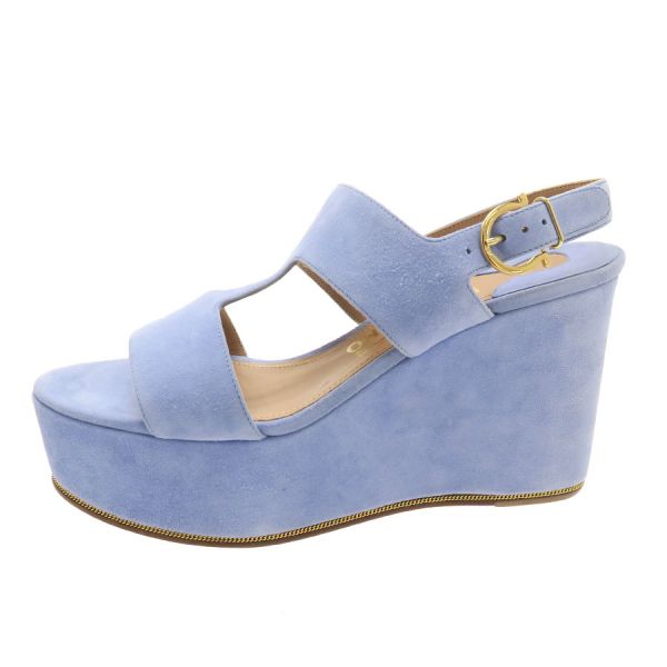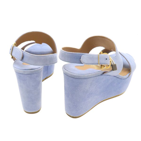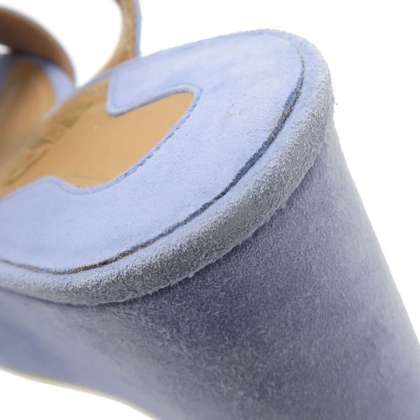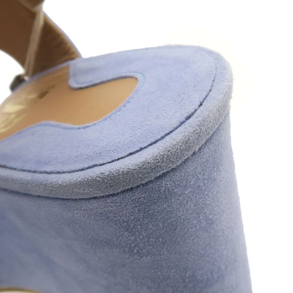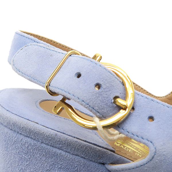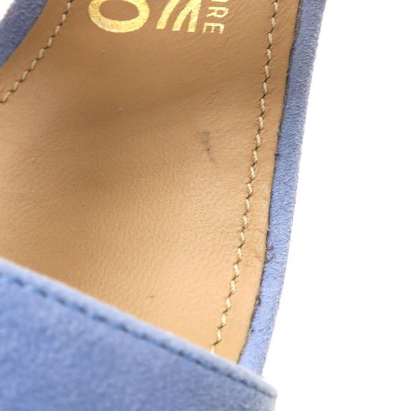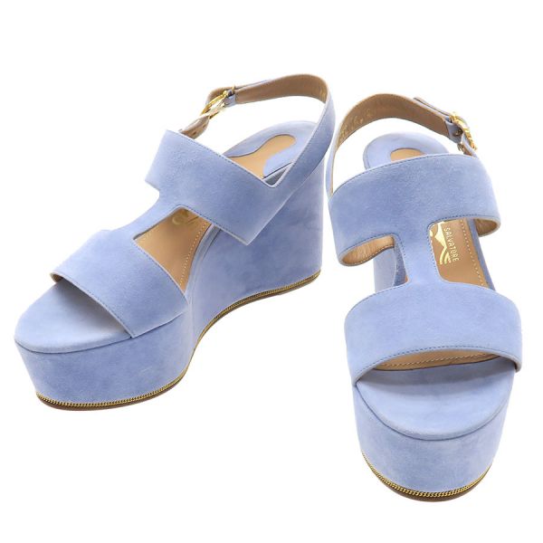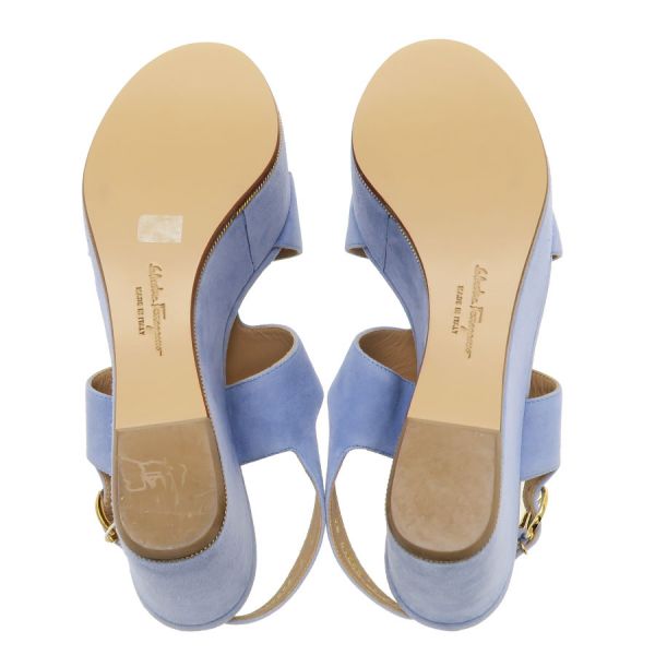 ■採寸#6 日本サイズ:約23.5cm程度 甲幅:約8cm ソール高さ:10cm■素材表記なし■コメントフェラガモからサンダルが入荷しました!淡いサックスブルーが可愛らしいスエードサンダル☆ウエッジソールにバックストラップ付きで歩きやすさもばっちりです!全体にスエード特有の色ムラや毛羽立ち感、所々にスレ感や左インソール部分に黒い汚れ、フチに極僅かな薄い黄ばみ感が見受けられる為Bランクでのご紹介となりました。外履き感はなく、恐らく試し履き程度の状態良好品で極めてAランク寄りのお品となっております◎