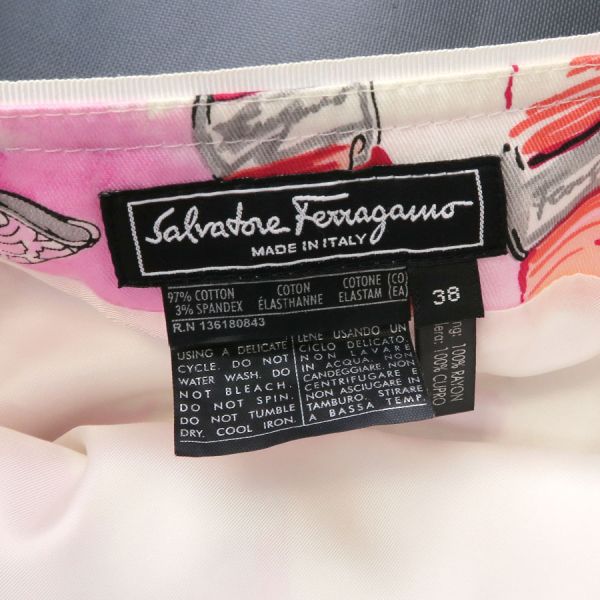 ■採寸#38 W:70cm H:90cm 総丈:56cm■素材コットン97% スパンデックス3%■コメントフェラガモからスカートが入荷しました。全面にリボンの総柄が可愛らしいスカートです☆状態は全体にややシワ、薄汚れ、ジッパー周り、前中央下や後ろウエスト縁周り・左裾下に茶汚れ等が見受けられますのでBランクでのご紹介です。普段着としてはまだまだ問題なくご着用いただけます◎
