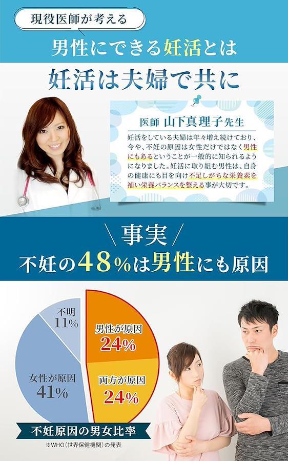 「妊活は夫婦で共に」WHO(世界保健機構)の調査では、不妊の原因の約50%は男性側にも原因があると結果がでました。