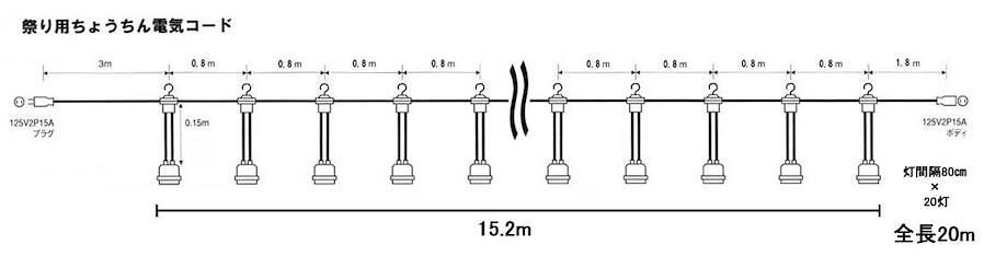 Festival Lantern Cord (Lantern/Lantern Electric Cord) Outdoor Waterproof Rubber Outlet Use A Type (Total Length 20m, 20 Lights, 80cm Interval) 8648