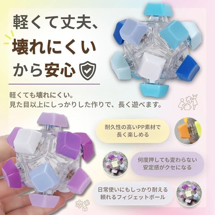 子供から大人まで幅広く活用できるので、学習やオフィスでの息抜きや、毎日のルーティンの中で楽しみながら創造性を育む理想的な知育・リラックス・フィジェットツールです。