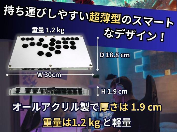 特徴: ファームウェア: GP2040 Community Edition GP2040-CE_0.7.10 すべてのボタンはホットスワップ対応のCherry MX Silverキースイッチを採用 USBインターフェース(Type BからType A)、より安定した接続とデータ伝送 SOCD対応、キーコンビネーションによる切り替え PC/PS3/PS4/SWITCH対応 仕様: ケーブルタイプ: USB(Type BからType A) ケーブル長: 約3m 材質: アクリル パネルサイズ: 30x18.8cm 製品高さ: 1.9cm 製品重量: 1.2kg パッケージ内容: 1 x FightBox B-PRO 全ボタンレバーレスアーケードゲームコントローラー