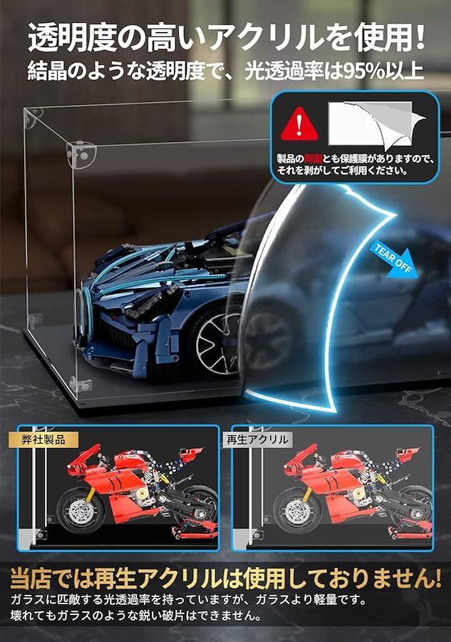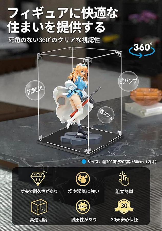 ・「セット内容」アクリルコレクションケース本体、防汚れ手袋、クリーニングクロス、説明書、フィルム除去ツール(表面保護フィルムを快速且簡単に除去できる)。