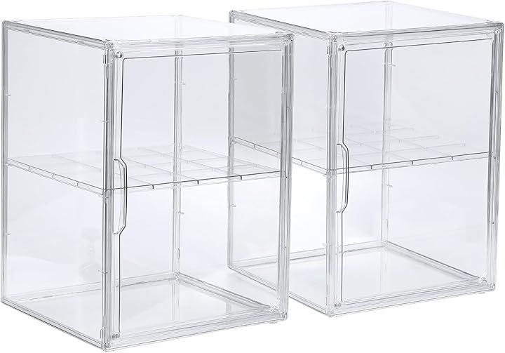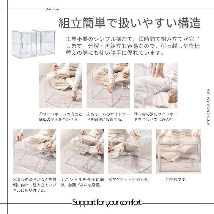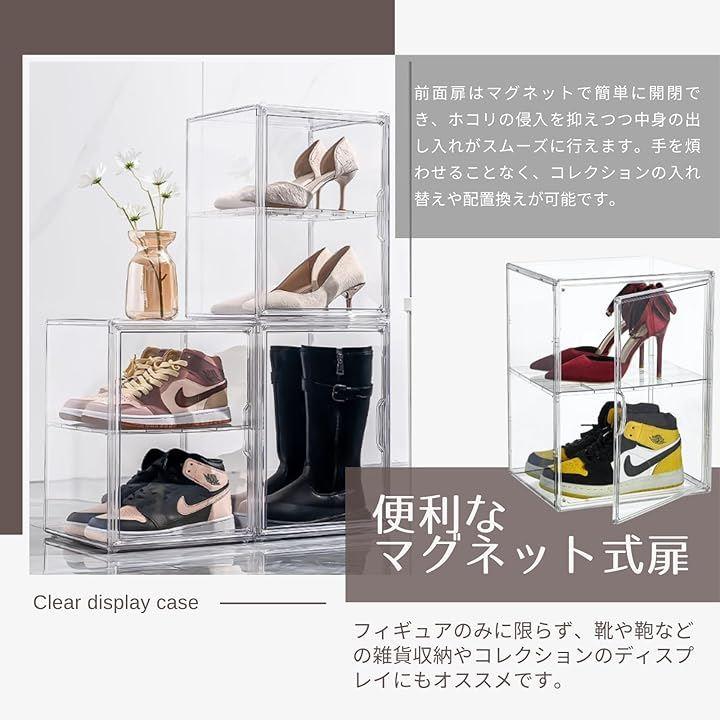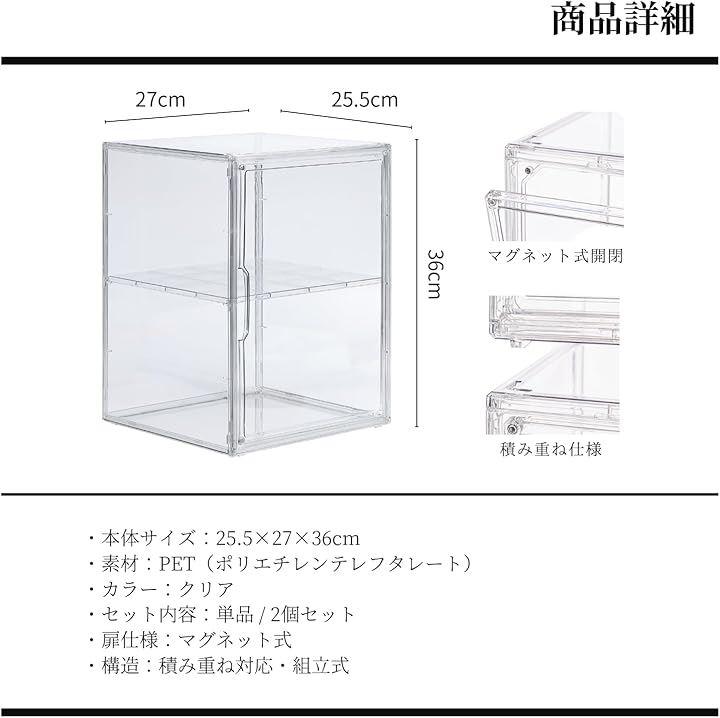 「商品詳細」 ・本体サイズ:画像参照 ・素材:高透明アクリル樹脂 ・カラー:クリア ・扉仕様:マグネット式 ・構造:積み重ね対応・組立式
