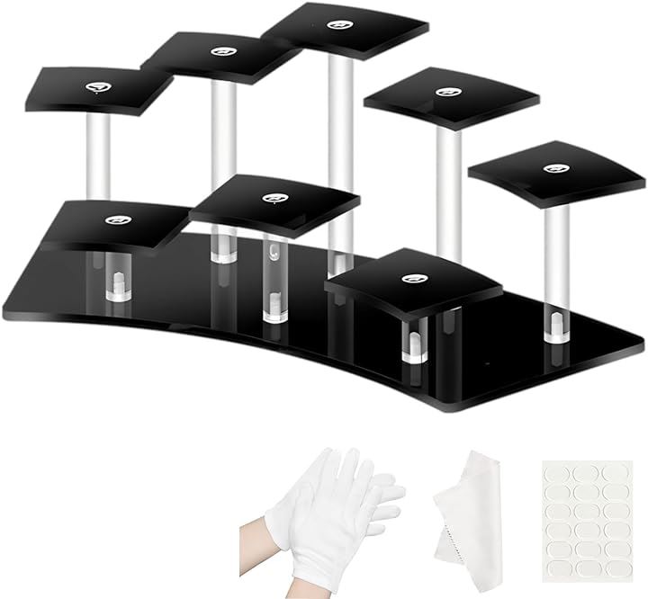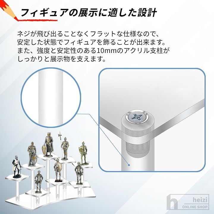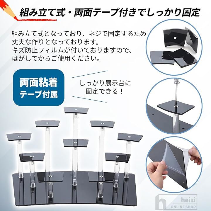 「商品詳細」サイズ(手前幅・奥幅・高さ・奥行) 5体:12x19x8x11.5cm 8体:21.5x29x12x12.5cm 10体:15.5x29.5x14x17.7cm カラー:各クリアー(透明)/ブラック 白手袋、ミニドライバー、固定用両面粘着テープ付き