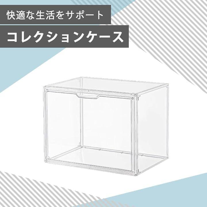 「商品詳細」 ・素材:プラスチック(PET) ・カラー:透明 ・サイズ:2種類(縦置き・横置き両方対応) ・特徴:大型、UVカット、高透明度、軽量、磁気付きドア、縦置き横置き対応 ・用途:フィギュア展示、模型収納、コレクションケース、ディスプレイ用、インテリア収納