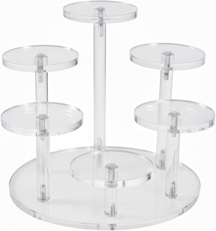Figure display stand, round acrylic base, display shelf, collection stand, figure case, multi-tiered, transparent, for 6 figures.