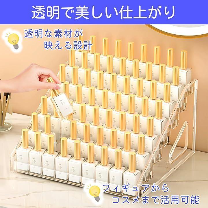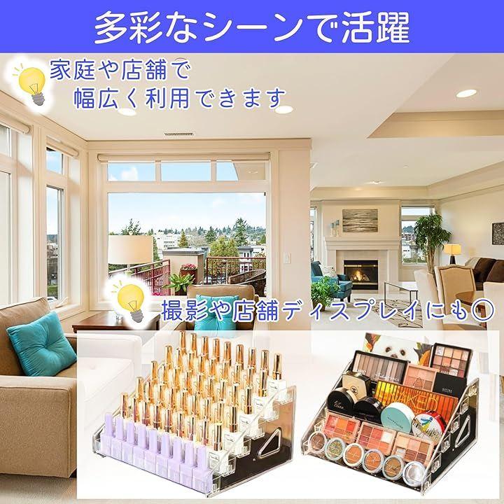 「多用途で幅広い活用が可能」フィギュアやアクセサリーだけでなく、コスメやネイルチップなど、さまざまなアイテムの展示や収納に対応します。