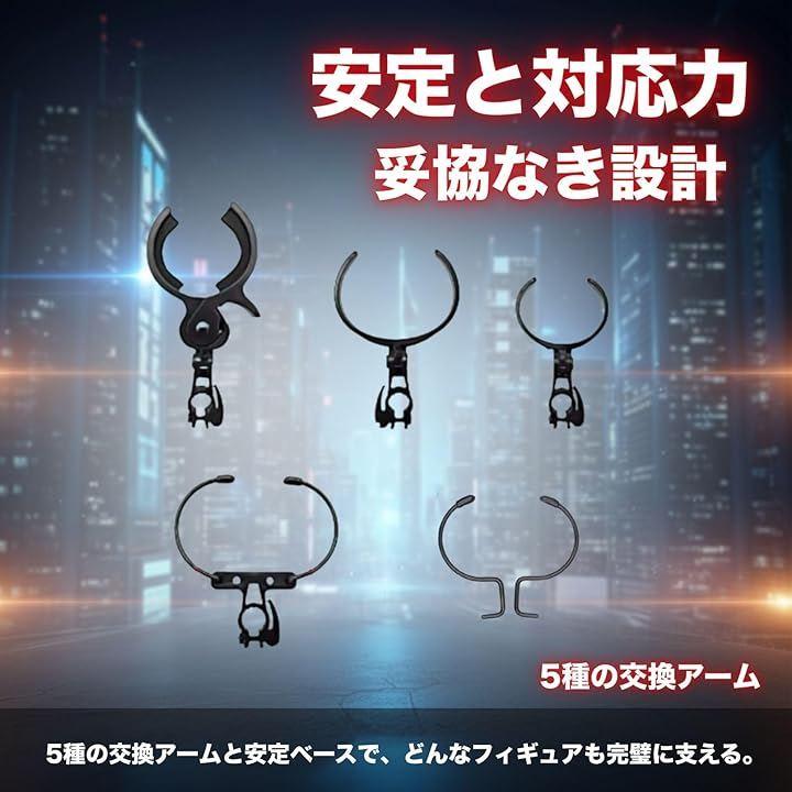 「5種類の交換アームで“どんな体格”もサポート」 付属の5タイプのクランプアームが、フィギュアの形状やポーズに合わせて自在に選択可能。