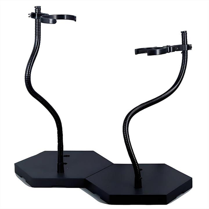 蛇腹式のフレキシブルアームが自由な角度・高さで固定でき、ジャンプ・空中戦・躍動感あるアクションをリアルに再現します。