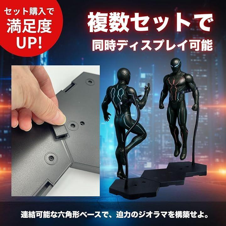 「連結可能な六角ベースで迫力のジオラマ構築」 台座は六角形ベース仕様で、ジョイントパーツを使えば複数のスタンドを連結可能。