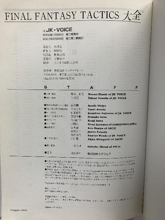 Final Fantasy Tactics Encyclopedia 2nd Edition KADOKAWA (Enterbrain) JK VOICE