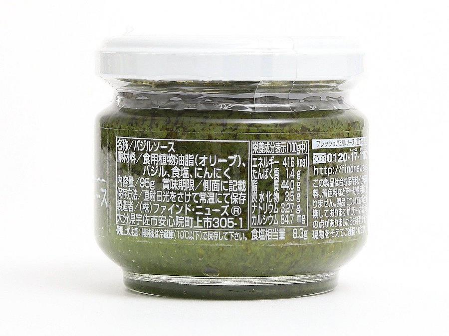 食用植物油脂(オリーブ油(スペイン製造))、バジル、食塩、にんにく