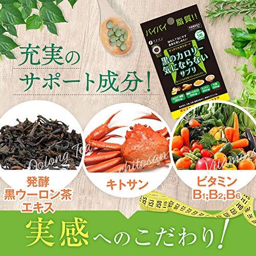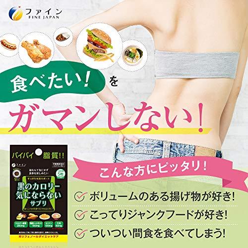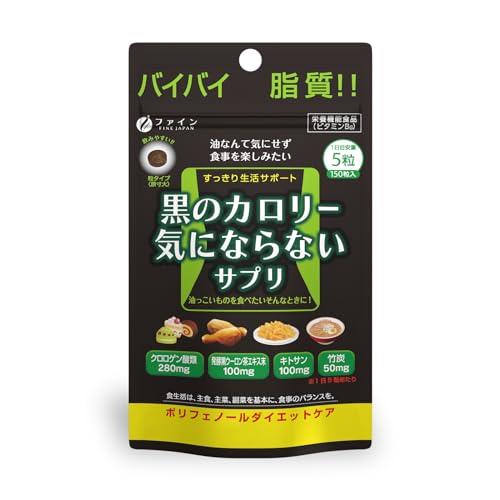 本品は脂質の摂りすぎに特化し、「食べたい」を我慢しない、「脂」を気にしない、ストレスフリーでしっかり食事を摂る健康的なダイエットをサポートするサプリメントです。クロロゲン酸類、発酵黒ウーロン茶エキス、キトサン、竹炭が脂質をサポートします。油っこい食事の前にお召し上がりください。 「黒のカロリー気にならない」は、脂やケーキなど、こってりギトギト系の食べ物がお好きな方におススメしたいサプリメントです。自社ファインバイオサイエンス研究所FBRC?で厳選した成分をぎゅっと濃縮しました。今日の「食べたい」を叶え、理想の美しいスタイルを目指しましょう! 脂と関わり深いクロロゲン酸の燃やす力と竹炭のじわじわと吸い取る力に着目した商品です。クロロゲン酸は一日あたりしっかり280mg摂ることができます。サポート成分の発酵黒ウーロン茶エキスは、緑茶を酵素などで発酵させ熟成したお茶のエキスで、脂質を寄せ付けない特徴があります。他にもキトサンや定番の3種類のビタミンを配合しています。 高いコスパを実現しています。ファインでは成分の種類、品質、配合量で高いレベルを保ちながらも、お続けいただきやすい価格を提案させていただいております。 商品の製造は、健康食品GMP対応自社生産工場(兵庫県3工場)など一貫した国内供給体制で、あらゆるジャンルのニーズを調査し、皆様にご満足いただける商品を提案し続けます。 規格成分(5粒(1g)あたり):クロロゲン酸類 280mg、酵黒ウーロン茶エキス 100mg、キトサン 100mg、竹炭 50mg お召し上がり方:栄養機能食品として1日5粒(1g)を目安に水または、ぬるま湯でお召し上がりください。 内容量:30g(200mg×150粒) 原産国:日本