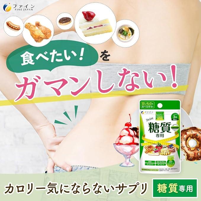 この商品について 綺麗も美味しいも我慢しない!今日の「食べたい」を叶える、楽しくスマートな食生活をサポートします。 「カロリー気にならない糖質専用」は、甘いものや麺類、お米が大好きな方に特におすすめします。ファイン研究所FBRC?でブドウから発見した炭水化物や糖と闘うファインだけの成分、「糖抑アミラーゼキラー?」を配合。毎日の「食べたい」を我慢しない、「糖」を気にしない、食べたいものをしっかり食べる健康的な食生活をサポートするサプリメントです。サラシア他、サポート成分も厳選してたくさん配合しています。ダイエッターの皆さんなら、サラシア、桑の葉、白いんげん豆、ギムネマは定番素材としてよくご存じだと思います。それぞれの食品素材が持つ独自素材はその働き方が違いますので、いろいろな角度から糖質にアプローチすることができます。続けていただきやすいコスパも考え、多くの主成分、サポート素材を配合した設計となっています。 ベジカプセル(植物性カプセル)を使用しており、アレルギーフリーです。 製造は健康食品GMP対応自社生産工場(兵庫県)など一貫した国内供給体制で行っています。 規格成分(3粒あたり):桑葉粉末 500mg、ギムネマシルベスタエキス末 100mg、白インゲン豆抽出物 100mg、サラシアエキス末 20mg、糖抑アミラーゼキラー 20mg お召し上がり方:栄養機能食品として1日3粒(1.2g)を目安に水または、ぬるま湯でお召し上がりください。 内容量:36g(400mg×90粒)