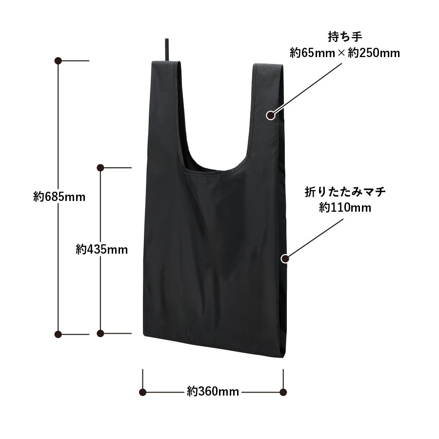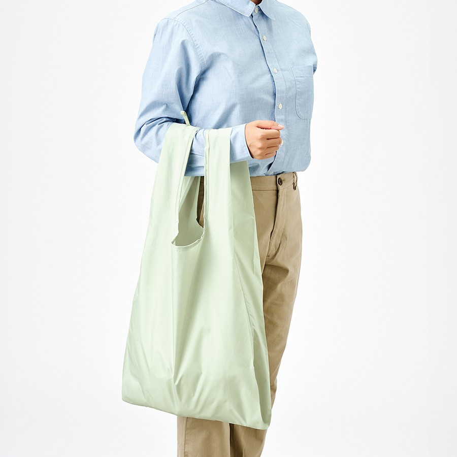 上質な光沢感としなやかでさらっとした手触りが特徴のファインライトポリを使用したマルシェバッグです。超薄手・超軽量かつ、ハンドル部分のゴムで止めていただくことで極小サイズになり、持ち歩き用のエコバッグとしてぴったりのアイテムです。M・L・LLの3サイズ展開で、LLサイズは大容量でお買い物バッグとしてぴったりです。また単色印刷はもちろん、フルカラー印刷にも対応しているのでお店やイベントロゴ、キャラクターなどもきれいに印刷ができます。ほかにない使い心地のよさながら、リーズナブルな価格帯で幅広い業界や案件にご提案していただけます。