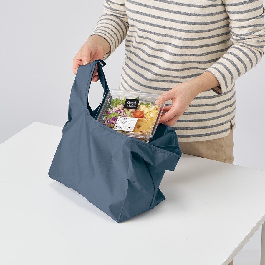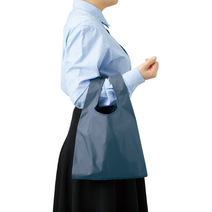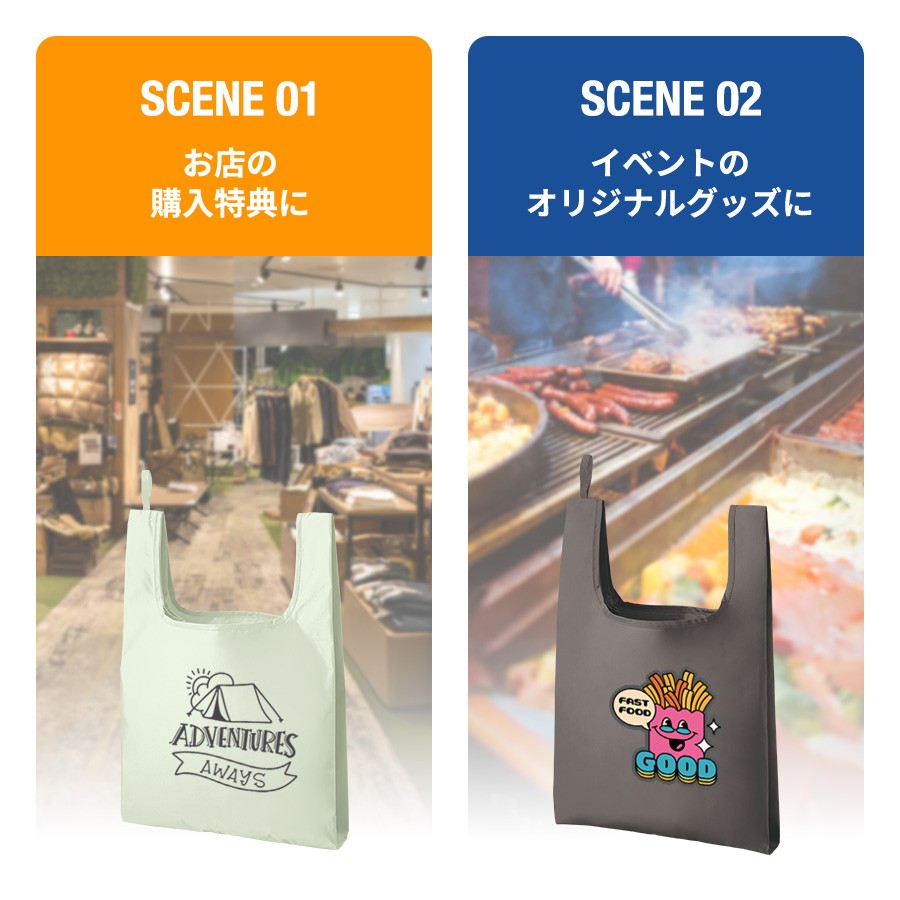 上質な光沢感としなやかでさらっとした手触りが特徴のファインライトポリを使用したマルシェバッグです。超薄手・超軽量かつ、ハンドル部分のゴムで止めていただくことで極小サイズになり、持ち歩き用のエコバッグとしてぴったりのアイテムです。M・Lの2サイズ展開で、Mサイズはお弁当などを入れるのに便利なサイズでコンビニなどちょっとしたお買い物におすすめです。特にマルシェバッグ(M)の重さはなんと単三乾電池(約23g)程度!持っていることを忘れるほどの超軽量バッグです。また単色印刷はもちろん、フルカラー印刷にも対応しているのでお店やイベントロゴ、キャラクターなどもきれいに印刷ができます。ほかにない使い心地のよさながら、リーズナブルな価格帯で幅広い業界や案件にご提案していただけます。