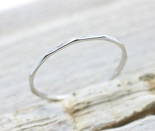 プラチナド製の極細リングです。(Pt900・華奢リング)一品でも、重ね付けにも、可愛らしくご利用頂けます。細く見えますが、打ち加工により強度をもたせております。一品一品丁寧にハンドメイドでお造り致しましたリングです。宝飾職人制作 日本製 華奢リング