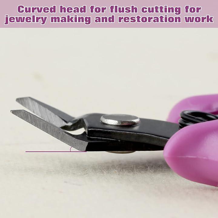 「用途」曲げしたヘッドによりフラッシュカットが可能で、ジュエリー製作や修復作業、ソフトワイヤー、アルミワイヤー、軟質合金ワイヤー、ジュエリーワイヤーなどの軟質素材の切断、プラスチック部品のトリミングに適しています。