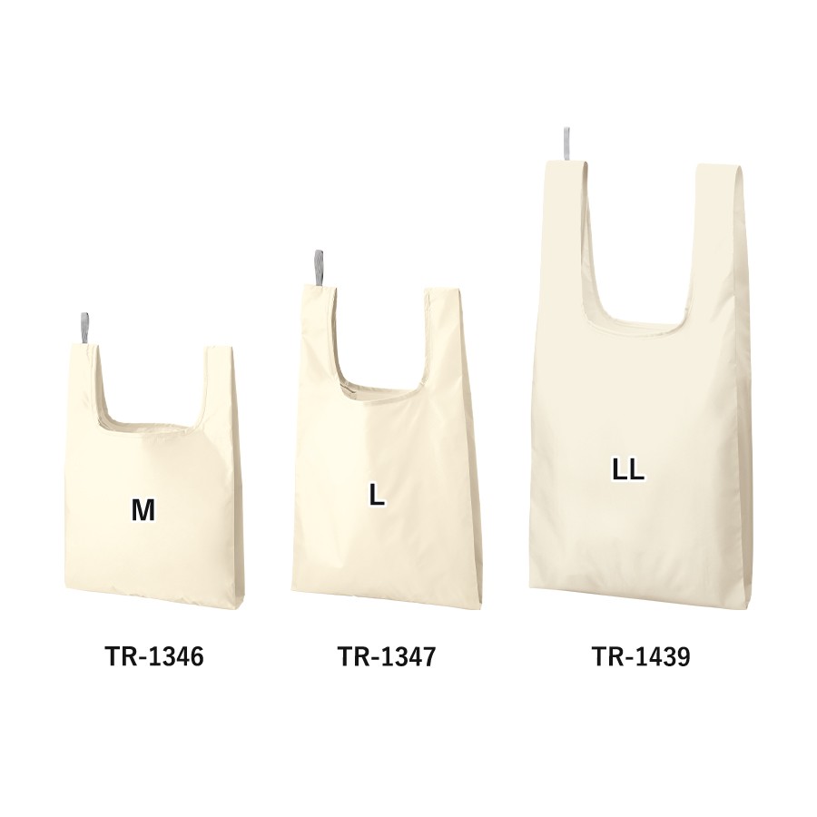 上質な光沢感としなやかでさらっとした手触りが特徴のファインライトポリを使用したマルシェバッグです。超薄手・超軽量かつ、ハンドル部分のゴムで止めていただくことで極小サイズになり、持ち歩き用のエコバッグとしてぴったりのアイテムです。M・Lの2サイズ展開で、Lサイズは2Lボトルも十分入るほどの大きさなので、荷物が多くなりそうなお買い物の日にもおすすめです。また単色印刷はもちろん、フルカラー印刷にも対応しているのでお店やイベントロゴ、キャラクターなどもきれいに印刷ができます。ほかにない使い心地のよさながら、リーズナブルな価格帯で幅広い業界や案件にご提案していただけます。