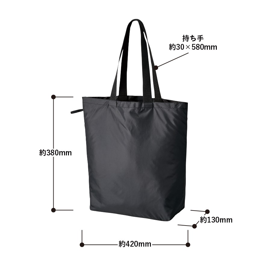 上質な光沢感としなやかでさらっとした手触りが特徴のファインライトポリを使用した舟形バッグです。超薄手・超軽量ながら、大容量サイズなのでお買い物にも最適です。持ち手部分にはテープハンドルを使用し、持ちやすさはもちろん見た目のアクセントにもなります。またゴムでとめていただくことで、コンパクトに畳むことができ持ち歩きにもぴったりです。単色印刷はもちろん、フルカラー印刷にも対応しているのでお店やイベントロゴ、キャラクターなどもきれいに印刷ができます。
